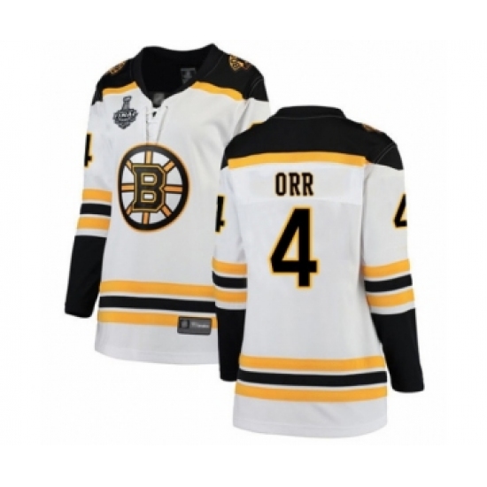 Women's Boston Bruins #4 Bobby Orr Authentic White Away Fanatics Branded Breakaway 2019 Stanley Cup Final Bound Hockey Jersey