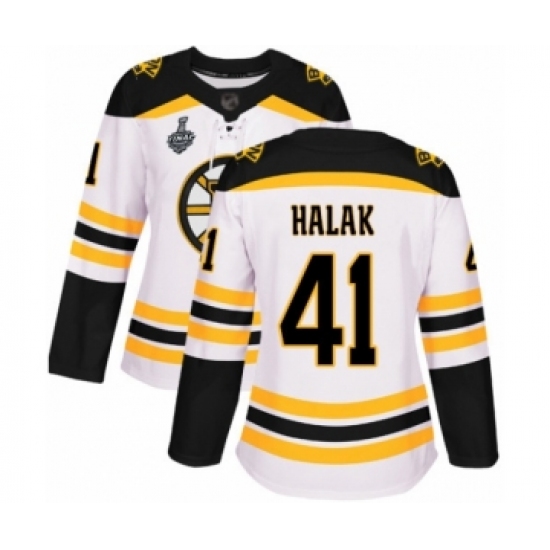 Women's Boston Bruins #41 Jaroslav Halak Authentic White Away 2019 Stanley Cup Final Bound Hockey Jersey