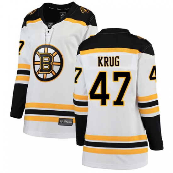 Women's Boston Bruins #47 Torey Krug Authentic White Away Fanatics Branded Breakaway NHL Jersey