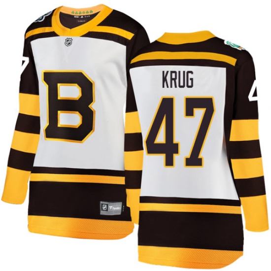 >Women's Boston Bruins #47 Torey Krug White 2019 Winter Classic Fanatics Branded Breakaway NHL Jersey