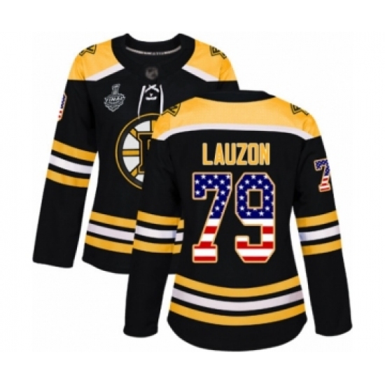 Women's Boston Bruins #79 Jeremy Lauzon Authentic Black USA Flag Fashion 2019 Stanley Cup Final Bound Hockey Jersey