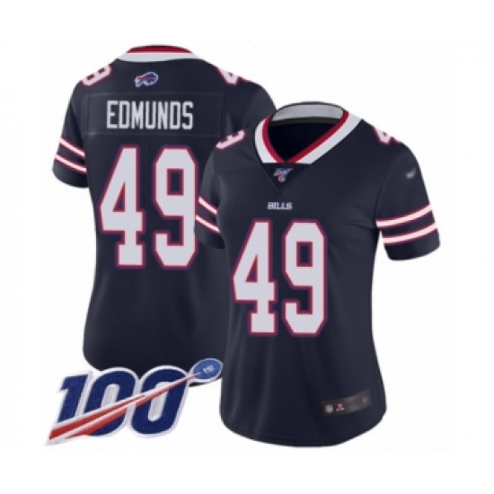 >Women's Buffalo Bills #49 Tremaine Edmunds Limited Navy Blue Inverted Legend 100th Season Football Jersey