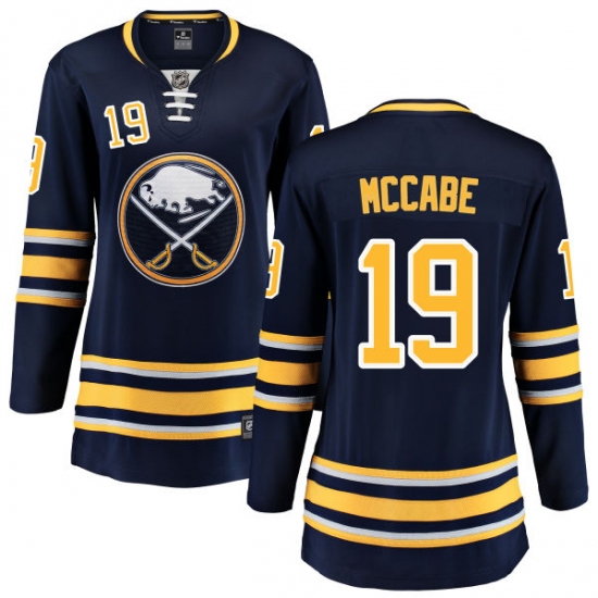 Home>NHL>Buffalo Sabres>Jake McCabe>Women's Buffalo Sabres #19 Jake McCabe Fanatics Branded Navy Blue Home Breakaway NHL Jersey