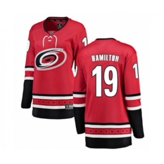 >Women's Carolina Hurricanes #19 Dougie Hamilton Authentic Red Home Fanatics Branded Breakaway NHL Jersey