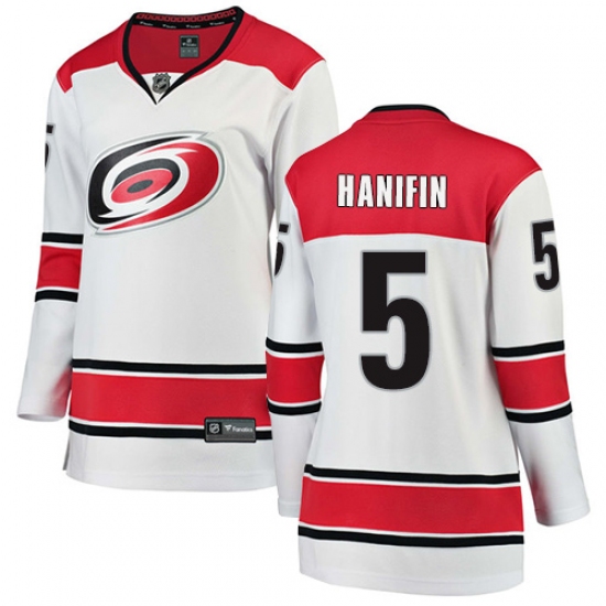 Home>NHL>Carolina Hurricanes>Noah Hanifin>Women's Carolina Hurricanes #5 Noah Hanifin Authentic White Away Fanatics Branded Breakaway NHL Jersey