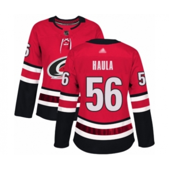 Women's Carolina Hurricanes #56 Erik Haula Authentic Red Home Hockey Jersey