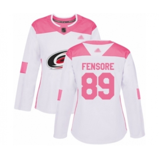 >Women's Carolina Hurricanes #89 Domenick Fensore Authentic White Pink Fashion Hockey Jersey