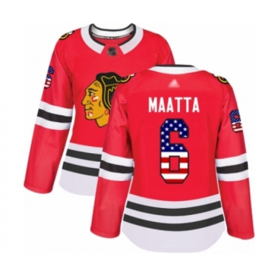 Women's Chicago Blackhawks #6 Olli Maatta Authentic Red USA Flag Fashion Hockey Jersey