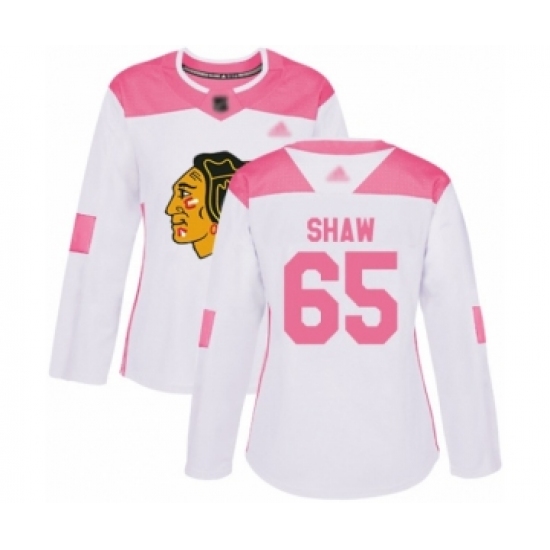 >Women's Chicago Blackhawks #65 Andrew Shaw Authentic White Pink Fashion Hockey Jersey