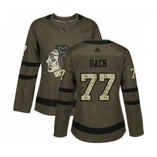 >Women's Chicago Blackhawks #77 Kirby Dach Authentic Green Salute to Service Hockey Jersey