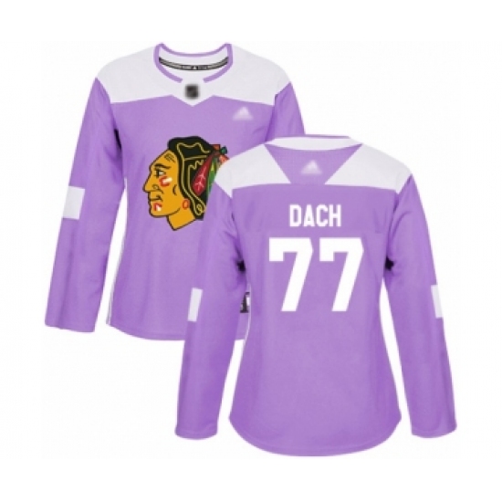 Women's Chicago Blackhawks #77 Kirby Dach Authentic Purple Fights Cancer Practice Hockey Jersey