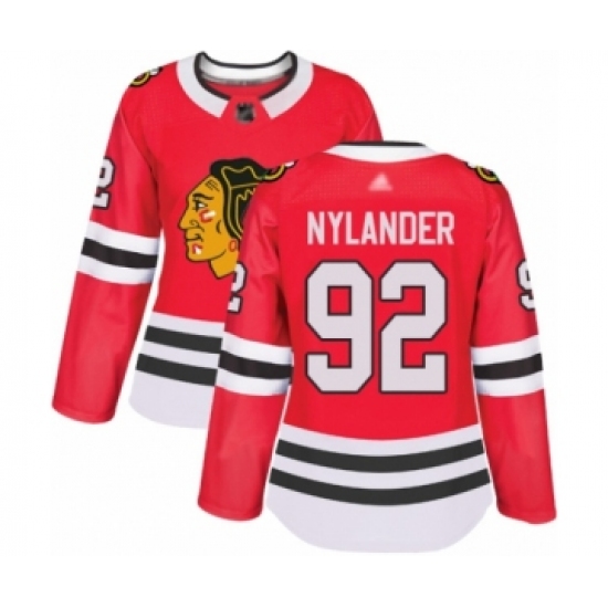 >Women's Chicago Blackhawks #92 Alexander Nylander Authentic Red Home Hockey Jersey