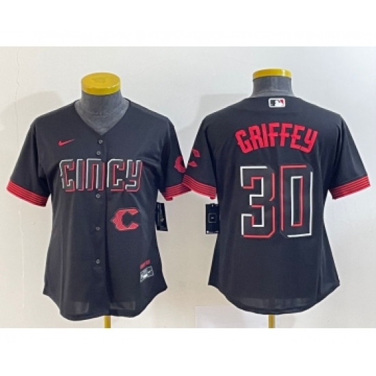 Women's Cincinnati Reds #30 Ken Griffey Jr Black 2023 City Connect Cool Base Stitched Jersey