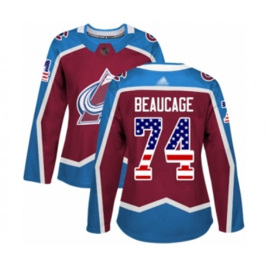 Women's Colorado Avalanche #74 Alex Beaucage Authentic Burgundy Red USA Flag Fashion Hockey Jersey