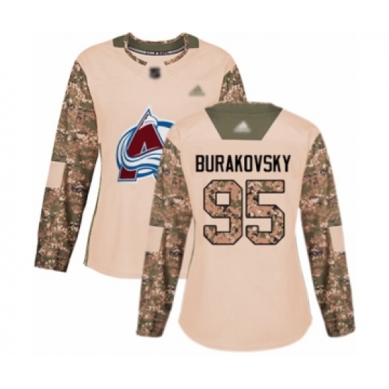 >Women's Colorado Avalanche #95 Andre Burakovsky Authentic Camo Veterans Day Practice Hockey Jersey