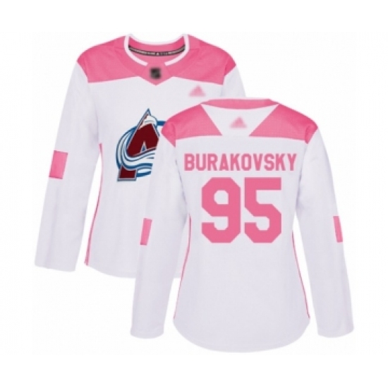 >Women's Colorado Avalanche #95 Andre Burakovsky Authentic White Pink Fashion Hockey Jersey