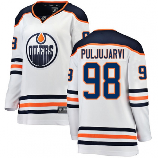 Home>NHL>Edmonton Oilers>Jesse Puljujarvi>Women's Edmonton Oilers #98 Jesse Puljujarvi Authentic White Away Fanatics Branded Breakaway NHL Jersey