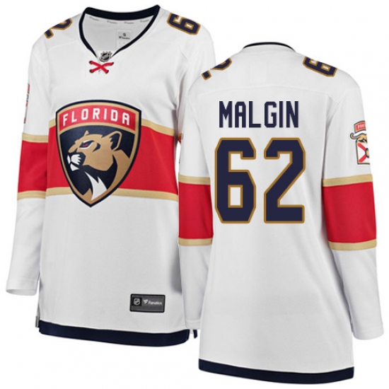 Home>NHL>Florida Panthers>Denis Malgin>Women's Florida Panthers #62 Denis Malgin Authentic White Away Fanatics Branded Breakaway NHL Jersey