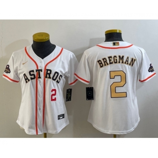 >Women's Houston Astros #2 Alex Bregman Number 2023 White Gold World Serise Champions Cool Base Stitched Jersey1
