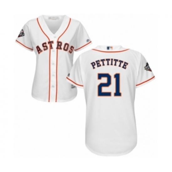 Women's Houston Astros #21 Andy Pettitte Authentic White Home Cool Base 2019 World Series Bound Baseball Jersey