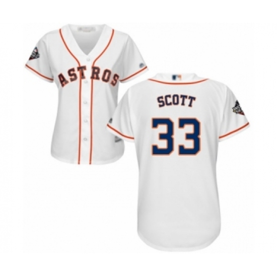 Women's Houston Astros #33 Mike Scott Authentic White Home Cool Base 2019 World Series Bound Baseball Jersey