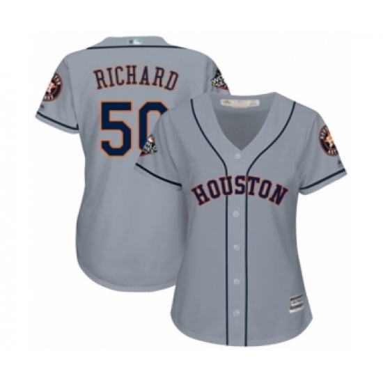 >Women's Houston Astros #50 J.R. Richard Authentic Grey Road Cool Base 2019 World Series Bound Baseball Jersey