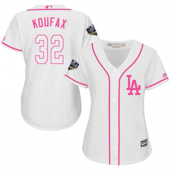 >Women's Majestic Los Angeles Dodgers #32 Sandy Koufax Authentic White Fashion Cool Base 2018 World Series MLB Jersey