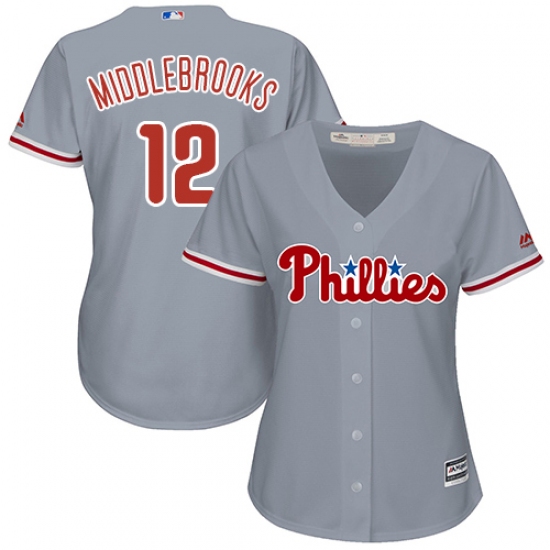 Home>MLB>Philadelphia Phillies>Will Middlebrooks>Women's Majestic Philadelphia Phillies #12 Will Middlebrooks Replica Grey Road Cool Base MLB Jersey