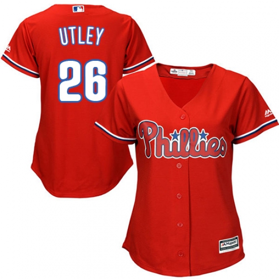 Women's Majestic Philadelphia Phillies #26 Chase Utley Authentic Red Alternate Cool Base MLB Jersey
