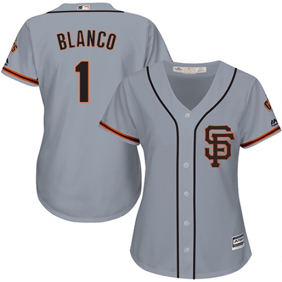 Home>MLB>San Francisco Giants>Gregor Blanco>Women's Majestic San Francisco Giants #1 Gregor Blanco Replica Grey Road 2 Cool Base MLB Jersey