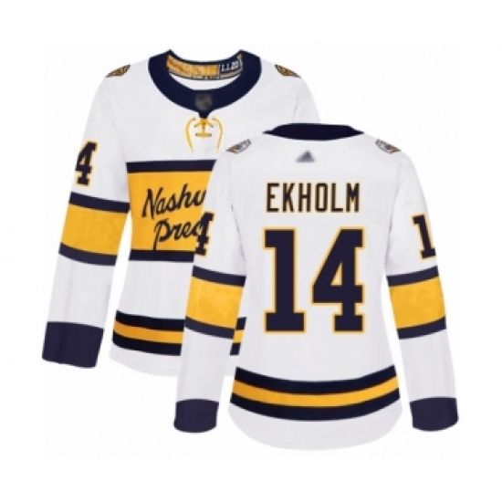 >Women's Nashville Predators #14 Mattias Ekholm Authentic White 2020 Winter Classic Hockey Jersey