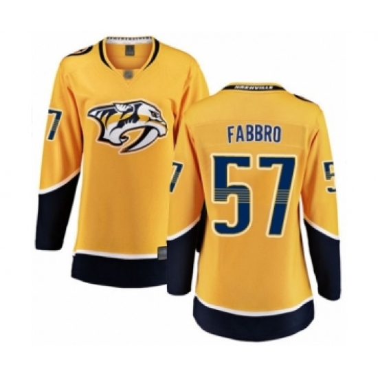 >Women's Nashville Predators #57 Dante Fabbro Fanatics Branded Gold Home Breakaway Hockey Jersey