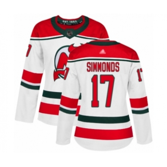 >Women's New Jersey Devils #17 Wayne Simmonds Authentic White Alternate Hockey Jersey