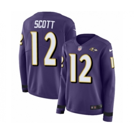 >Women's Nike Baltimore Ravens #12 Jaleel Scott Limited Purple Therma Long Sleeve NFL Jersey
