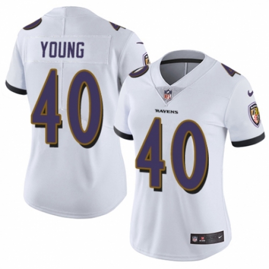 Women's Nike Baltimore Ravens #40 Kenny Young White Vapor Untouchable Limited Player NFL Jersey