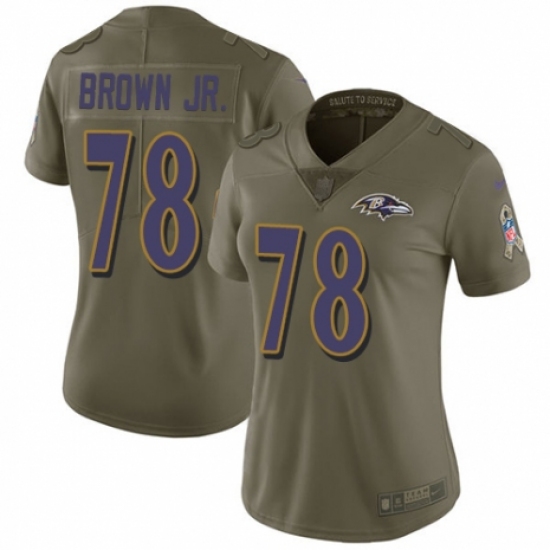 >Women's Nike Baltimore Ravens #78 Orlando Brown Jr. Limited Olive 2017 Salute to Service NFL Jersey