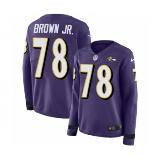 >Women's Nike Baltimore Ravens #78 Orlando Brown Jr. Limited Purple Therma Long Sleeve NFL Jersey