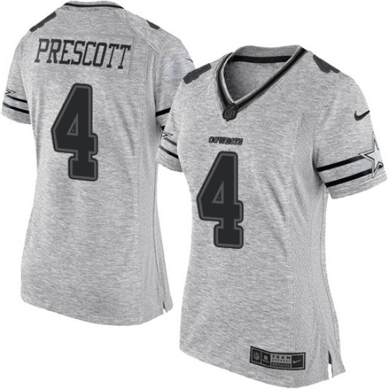 Women's Nike Dallas Cowboys #4 Dak Prescott Limited Gray Gridiron II NFL Jersey