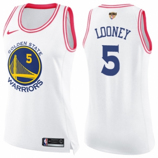 Women's Nike Golden State Warriors #5 Kevon Looney Swingman White/Pink Fashion 2018 NBA Finals Bound NBA Jersey