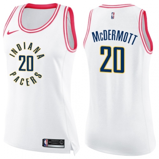 Women's Nike Indiana Pacers #20 Doug McDermott Swingman White Pink Fashion NBA Jersey