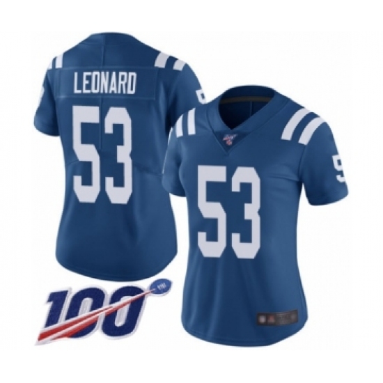 Women's Nike Indianapolis Colts #53 Darius Leonard Royal Blue Team Color Vapor Untouchable Limited Player 100th Season NFL Jersey