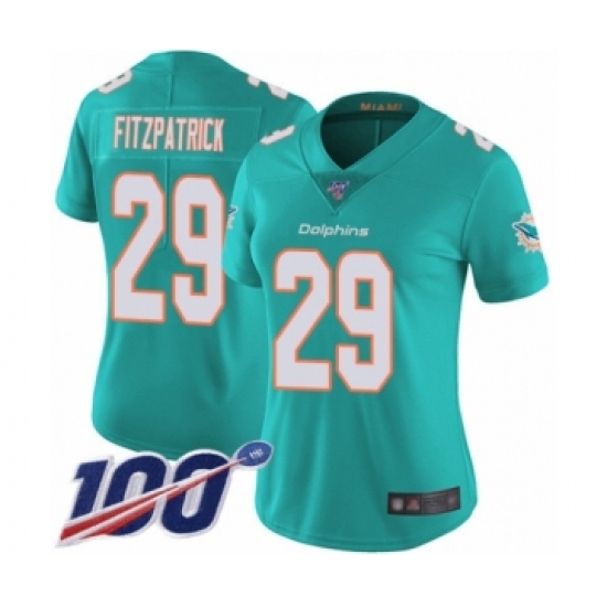 >Women's Nike Miami Dolphins #29 Minkah Fitzpatrick Aqua Green Team Color Vapor Untouchable Limited Player 100th Season NFL Jersey
