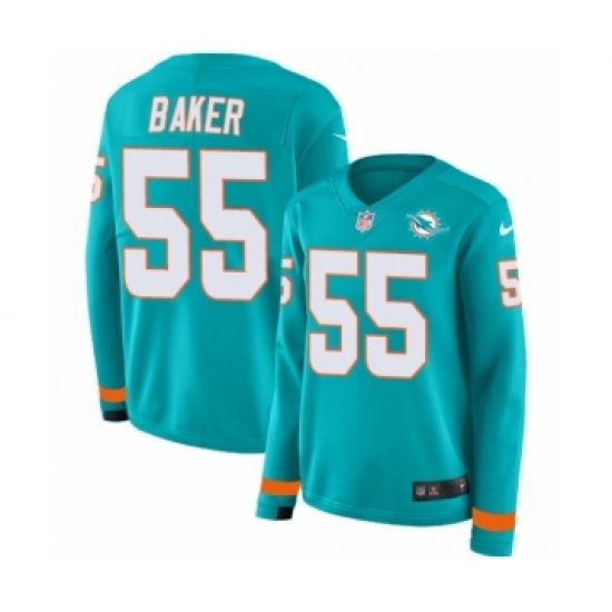 >Women's Nike Miami Dolphins #55 Jerome Baker Limited Aqua Therma Long Sleeve NFL Jersey