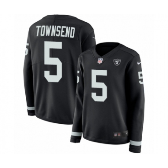 >Women's Nike Oakland Raiders #5 Johnny Townsend Limited Black Therma Long Sleeve NFL Jersey