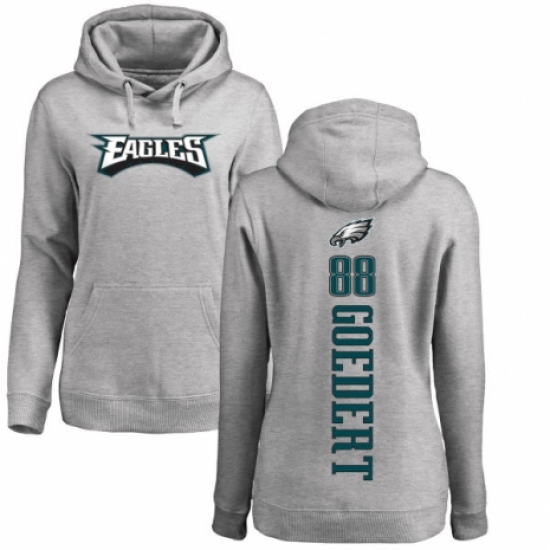 >Women's Nike Philadelphia Eagles #88 Dallas Goedert Ash Backer Pullover Hoodie