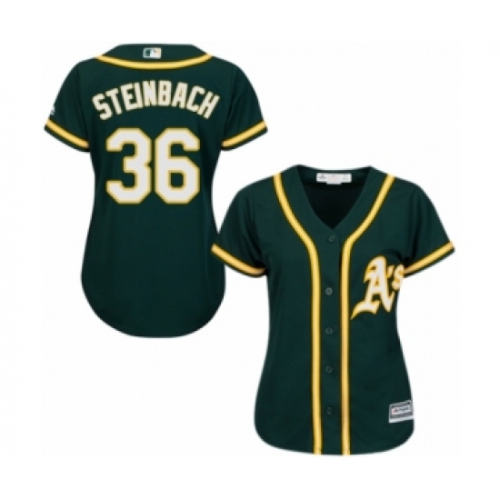 >Women's Oakland Athletics #36 Terry Steinbach Replica Green Alternate 1 Cool Base Baseball Jersey