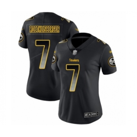 >Women's Pittsburgh Steelers #7 Ben Roethlisberger Limited Black Smoke Fashion Football Jersey