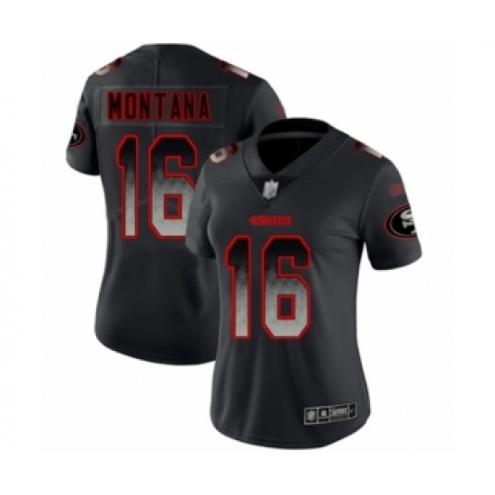 Women's San Francisco 49ers #16 Joe Montana Limited Black Smoke Fashion Football Jersey