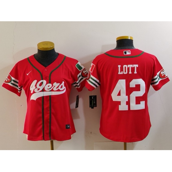 Women's San Francisco 49ers #42 Ronnie Lott Red Mexico Cool Base Stitched Baseball Jersey
