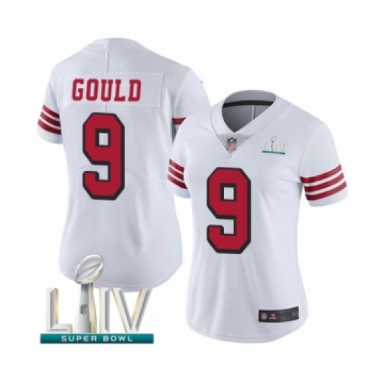 Women's San Francisco 49ers #9 Robbie Gould Limited White Rush Vapor Untouchable Super Bowl LIV Bound Football Jersey